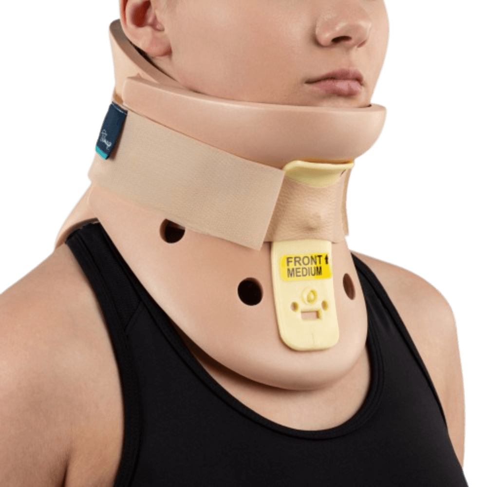 Dwuczęściowy kołnierz ortopedyczny PHILADELPHIA Timago to wyrób medyczny przeznaczony do skutecznej stabilizacji i odciążenia odcinka szyjnego kręgosłupa. Wykonany z anatomicznie wyprofilowanej pianki polietylenowej oraz wzmocnień z PCV, zapewnia wysoką trwałość i komfort użytkowania. Kołnierz wyposażono w otwory wentylacyjne, które umożliwiają swobodny przepływ powietrza, oraz otwór tracheostomijny zapewniający dostęp do dróg oddechowych. Produkt jest przepuszczalny dla promieni RTG, co pozwala na przeprowadzanie badań obrazowych bez konieczności jego zdejmowania. Regulacja i zapięcie na rzep umożliwiają szybkie i indywidualne dopasowanie do szyi pacjenta.