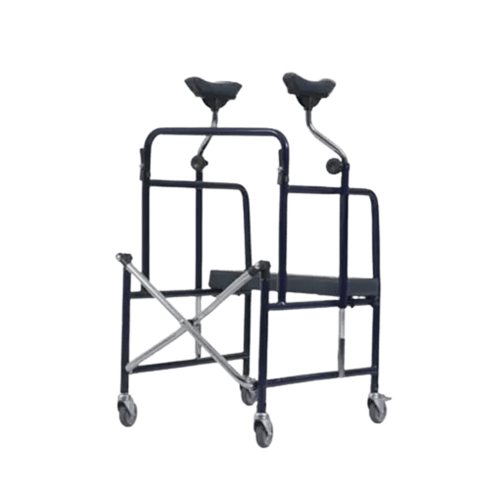 Balkonik rehabilitacyjny składany 266 na czterech kółkach z podparciami pod pachy to specjalistyczne urządzenie wspierające osoby z ograniczoną sprawnością ruchową, w szczególności z osłabieniem lub lekką dysfunkcją kończyn dolnych. Dzięki swojej konstrukcji umożliwia on zarówno pionizację, jak i samodzielne poruszanie się, co znacząco poprawia komfort oraz niezależność użytkownika w codziennym funkcjonowaniu. Stabilna, kratowa rama zapewnia poczucie bezpieczeństwa i pewne podparcie, a tapicerowane siedzisko daje możliwość odpoczynku w dowolnym momencie. Balkonik może być stosowany zarówno przez osoby starsze, jak i pacjentów w okresie leczenia czy rekonwalescencji. Sprawdza się przede wszystkim w pomieszczeniach zamkniętych, ale może być użytkowany również na zewnątrz – pod warunkiem, że teren jest utwardzony i gładki. Składana konstrukcja ułatwia transport i przechowywanie, a szeroki zakres regulacji wysokości podpórek barkowych pozwala na idealne dopasowanie do potrzeb użytkownika.