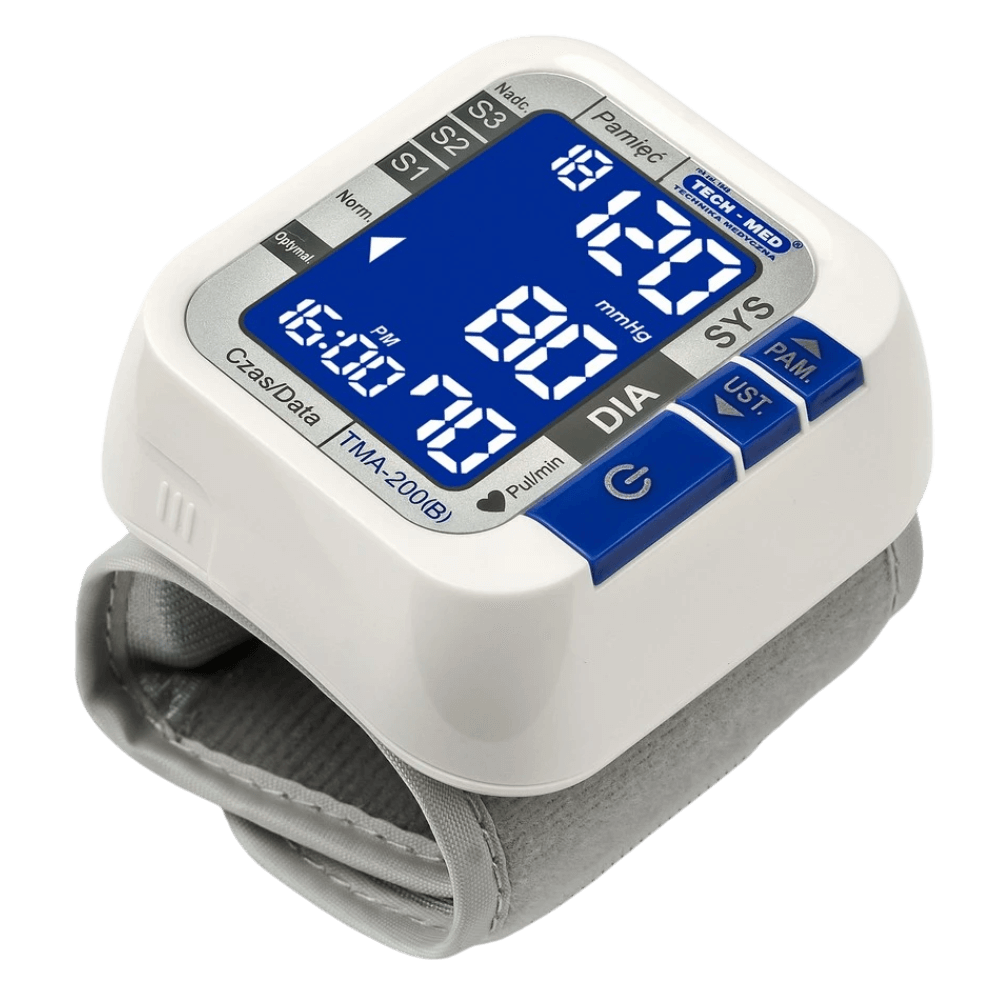 Ciśnieniomierz nadgarstkowy elektroniczny TMA-200 (B) TECH-MED, pomiar podczas pompowania, czytelny ekran, wykrywa arytmię