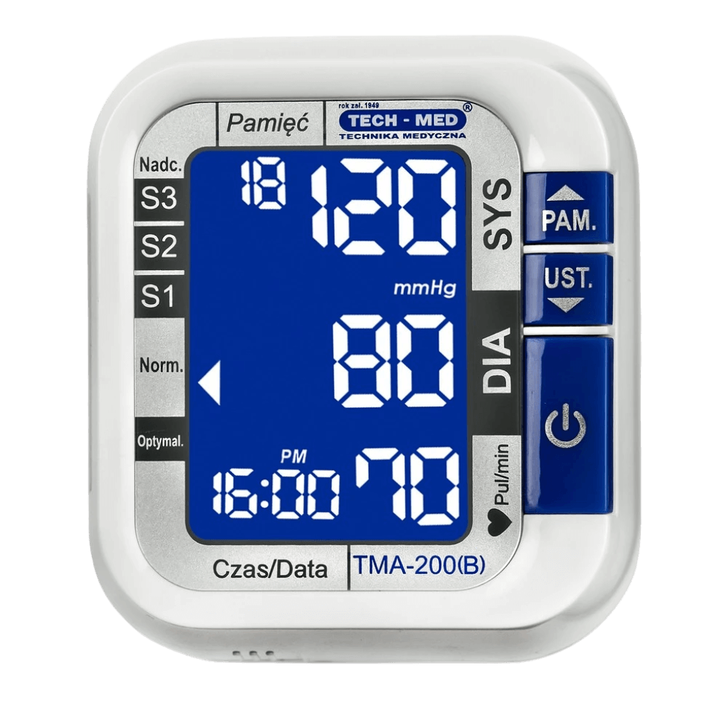 TECH-MED TMA-200(B) to nowoczesny, w pełni automatyczny ciśnieniomierz nadgarstkowy, który zapewnia najwyższą dokładność, wiarygodność oraz wygodę pomiaru w każdych warunkach. Dzięki zaawansowanej technologii DPDA oraz dużemu, niebieskiemu wyświetlaczowi LCD, urządzenie gwarantuje szybki i komfortowy pomiar już za naciśnięciem jednego przycisku. Kompaktowa konstrukcja i eleganckie etui sprawiają, że TMA-200(B) jest idealny do codziennego użytku w domu i w podróży.