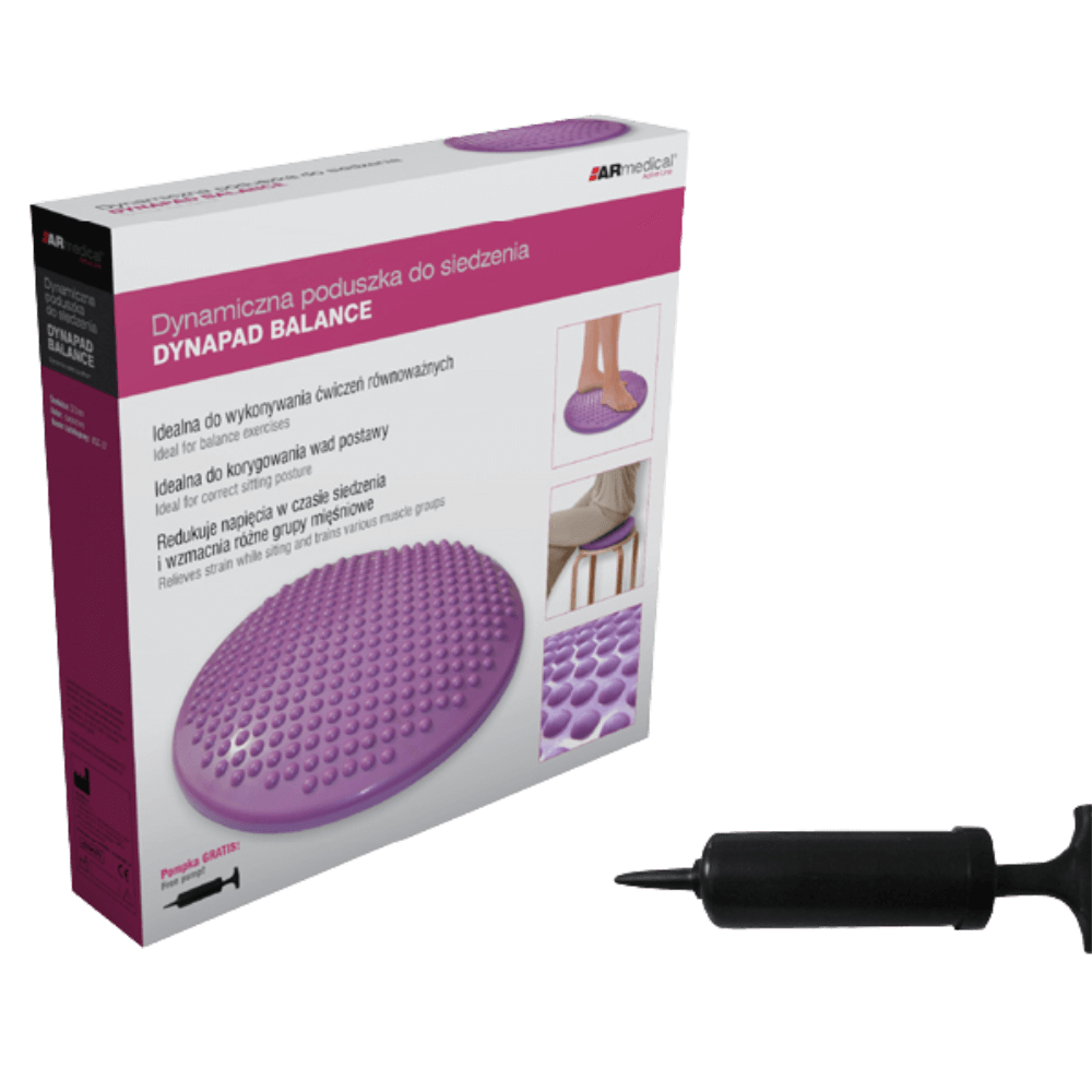 Dynamiczna poduszka do siedzenia DYNAPAD BALANCE została stworzona z myślą o wsparciu rehabilitacji i treningu funkcjonalnego. Dedykowana jest zarówno osobom, które potrzebują wzmocnienia mięśni głębokich tułowia i nóg, jak i tym, którzy chcą poprawić swoją postawę podczas siedzenia. Poduszka wymusza prawidłową pozycję ciała, stymuluje mikro-ruchy krążków międzykręgowych oraz odciąża odcinek lędźwiowy kręgosłupa. Dzięki zaworowi regulacji ciśnienia użytkownik może dopasować twardość i wysokość poduszki do własnych potrzeb. Dodatkowo wypustki na jednej z powierzchni pozwalają na masaż stóp, poprawiając ich ukrwienie i stymulując receptory.