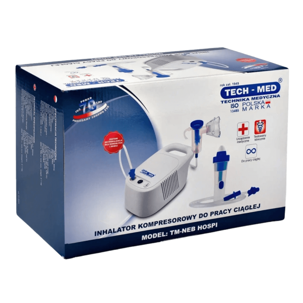 Inhalator kompresorowy z irygatorem TM-NEB HOSPI TECH-MED – do nebulizacji i oczyszczania zatok, do pracy ciągłej, 2 maski