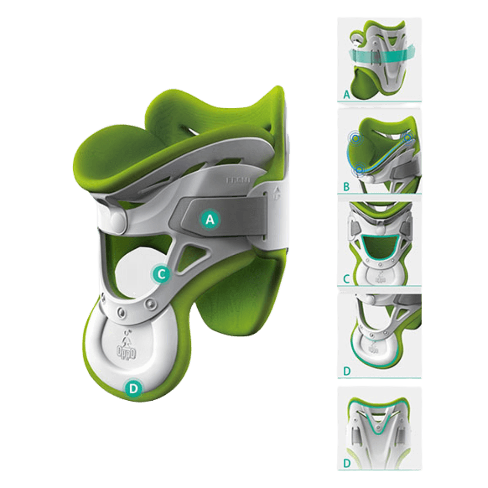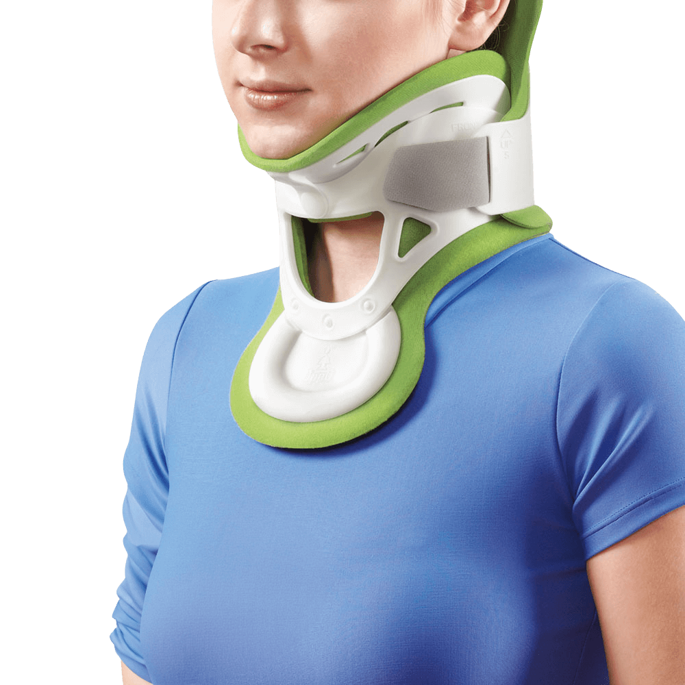 Pełne usztywnienie kręgosłupa szyjnego – Całkowita stabilizacja szyjnego odcinka kręgosłupa, podtrzymywanie głowy z tyłu i z przodu, pozycjonowanie w optymalnym, anatomicznym położeniu.