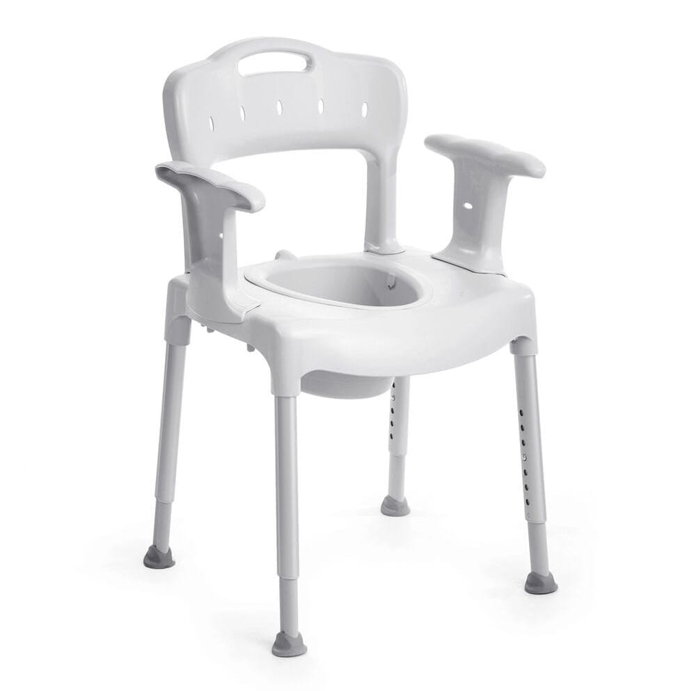 Krzesełko toaletowe Etac Swift Commode to wszechstronny produkt, zaprojektowany z myślą o osobach, które na co dzień potrzebują dodatkowego wsparcia podczas korzystania z toalety czy prysznica. Dzięki przemyślanej konstrukcji pełni aż trzy funkcje, może być używane jako krzesełko sanitarne z pojemnikiem, siedzisko prysznicowe, a po założeniu miękkich nakładek – jako zwykłe krzesło wykorzystywane z powodzeniem przy codziennych czynnościach.