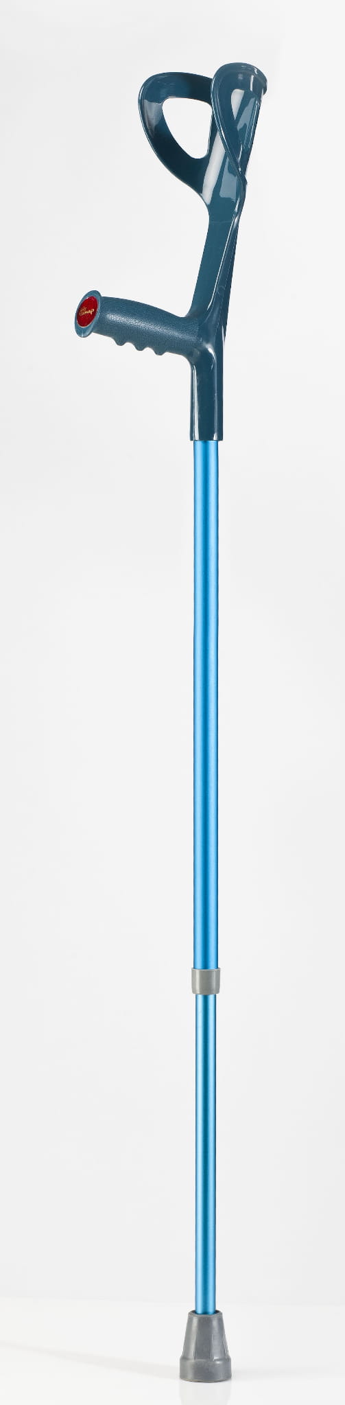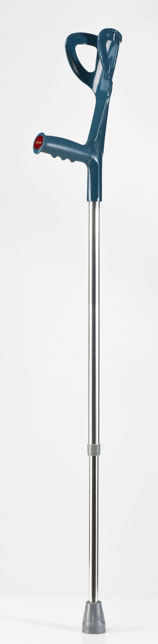 Kula łokciowa JMC-C wyróżnia się ergonomicznym kształtem, który został starannie zaprojektowany, aby równomiernie rozłożyć siłę nacisku na uchwyt. Trzon wykonany z lekkiego, anodyzowanego aluminium zapewnia trwałość oraz łatwość obsługi, a gumowa nasadka na końcu trzonu gwarantuje stabilność na różnych nawierzchniach.