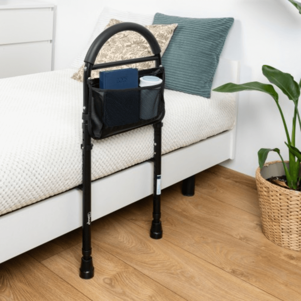 GripTim to funkcjonalna poręcz przyłóżkowa, zaprojektowana z myślą o osobach o obniżonej sprawności ruchowej, które potrzebują wsparcia podczas wstawania z łóżka lub zmiany pozycji z leżącej na siedzącą. Poręcz sprawdza się zarówno w warunkach domowych, jak i w placówkach opieki medycznej, zapewniając bezpieczeństwo, komfort i większą samodzielność użytkownika.
