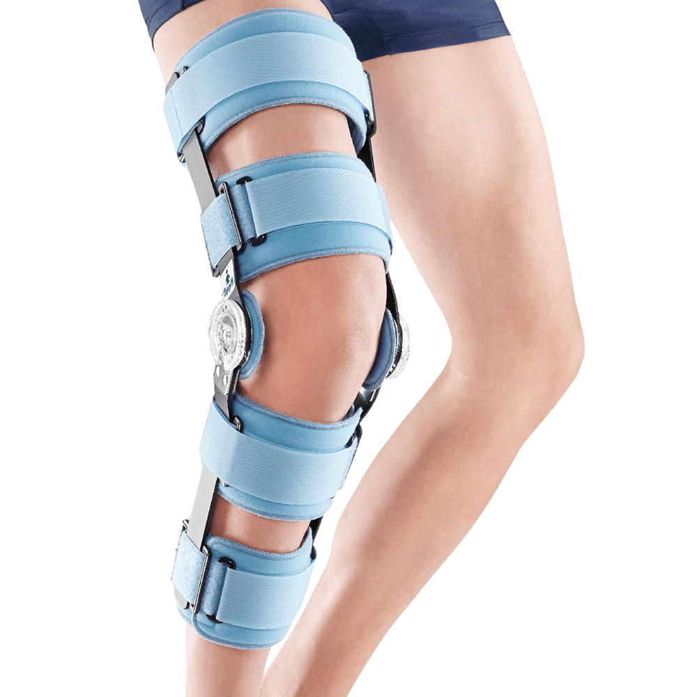 Boczne wzmocnienia z zawiasami – stabilizują staw kolanowy i zabezpieczają go przed przeprostem oraz niekontrolowanymi ruchami bocznymi.