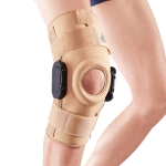 Boczne wzmocnienia z zawiasami – stabilizują staw kolanowy w płaszczyźnie poprzecznej, zapewniając bezpieczeństwo i komfort użytkowania.