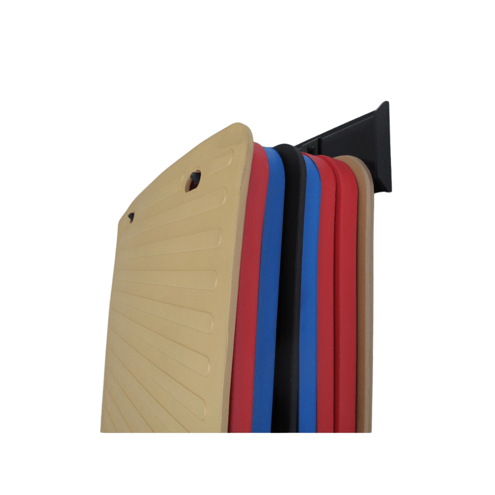 Pozwalają na oszczędność miejsca i utrzymanie porządku – montaż na ścianie eliminuje problem leżących mat i maksymalizuje dostępną przestrzeń.