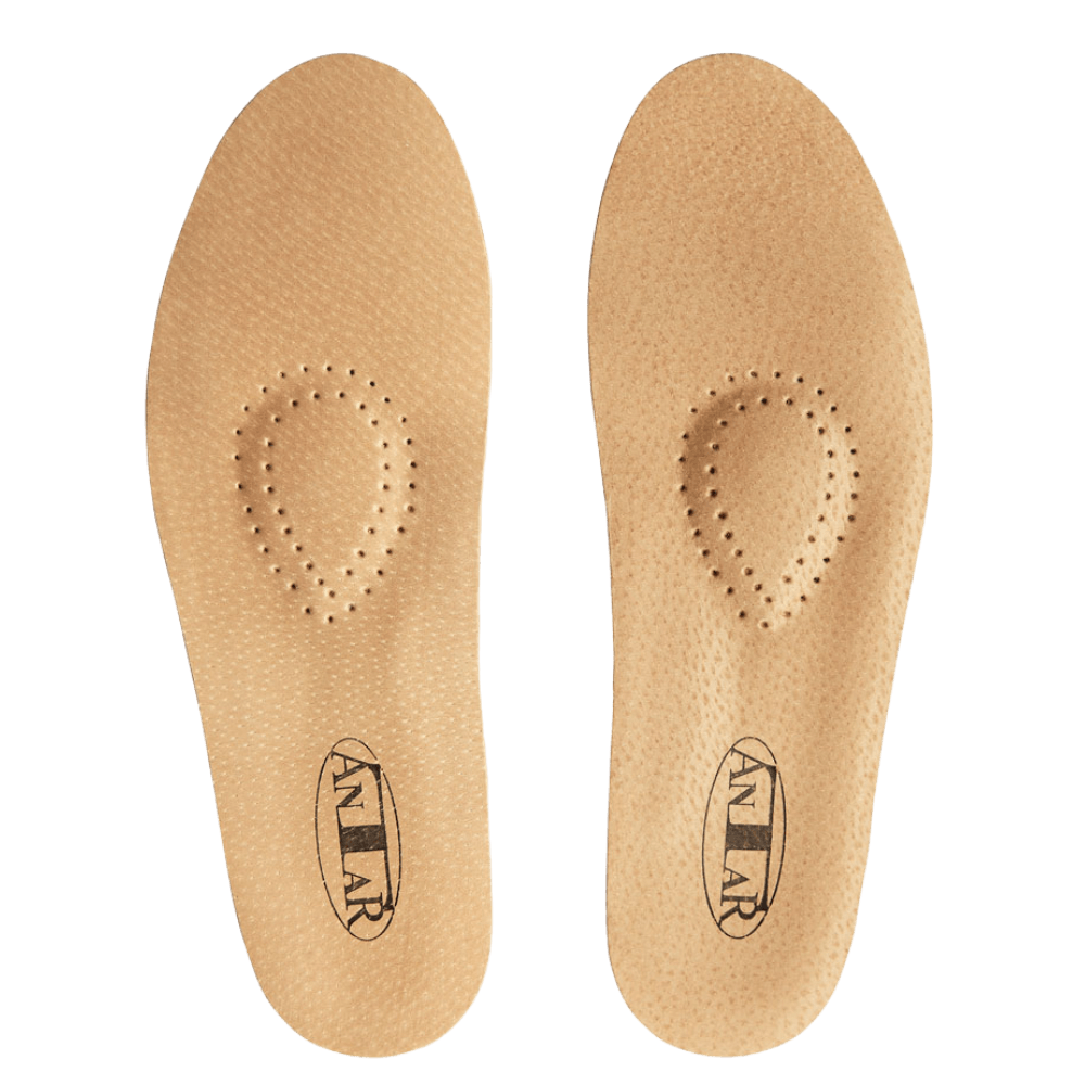Wkładki ortopedyczne, skórzane przeciw płaskostopiu poprzecznemu i podłużnemu na sztywnym podzespole AT53501 - Antar