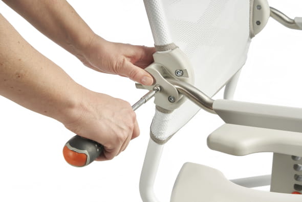 - Regulowana wysokość siedziska: 50–65 cm – dopasowanie do potrzeb użytkownika i ułatwienie transferu.